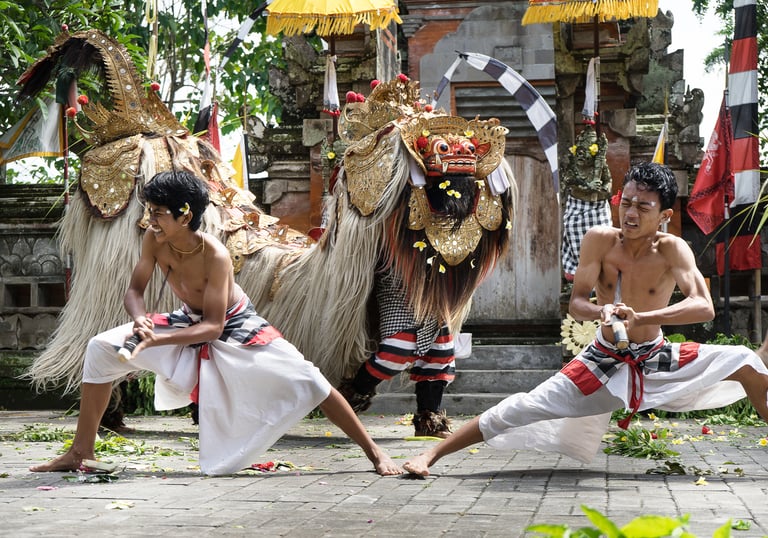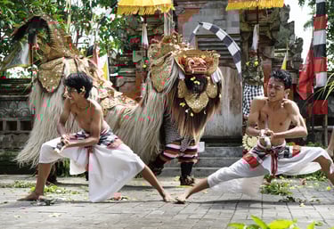 Pagelaran tari tradisional yang sakral cerminan filosofi simbolisme kebajikan dan kejahatan.