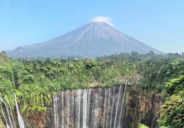 Kemegahan tirai air di kaki Gunung Semeru bak serpihan dari surga